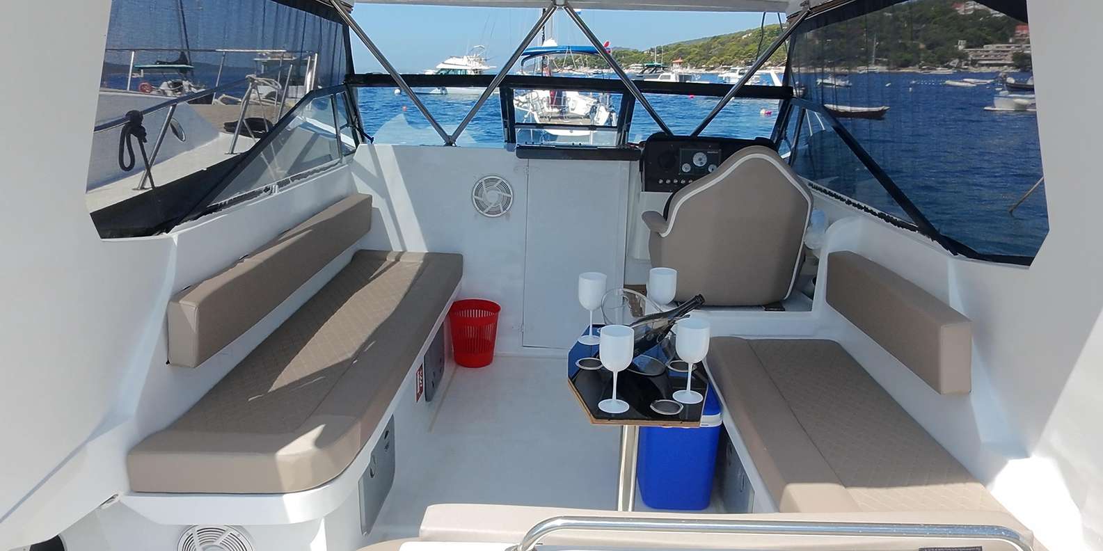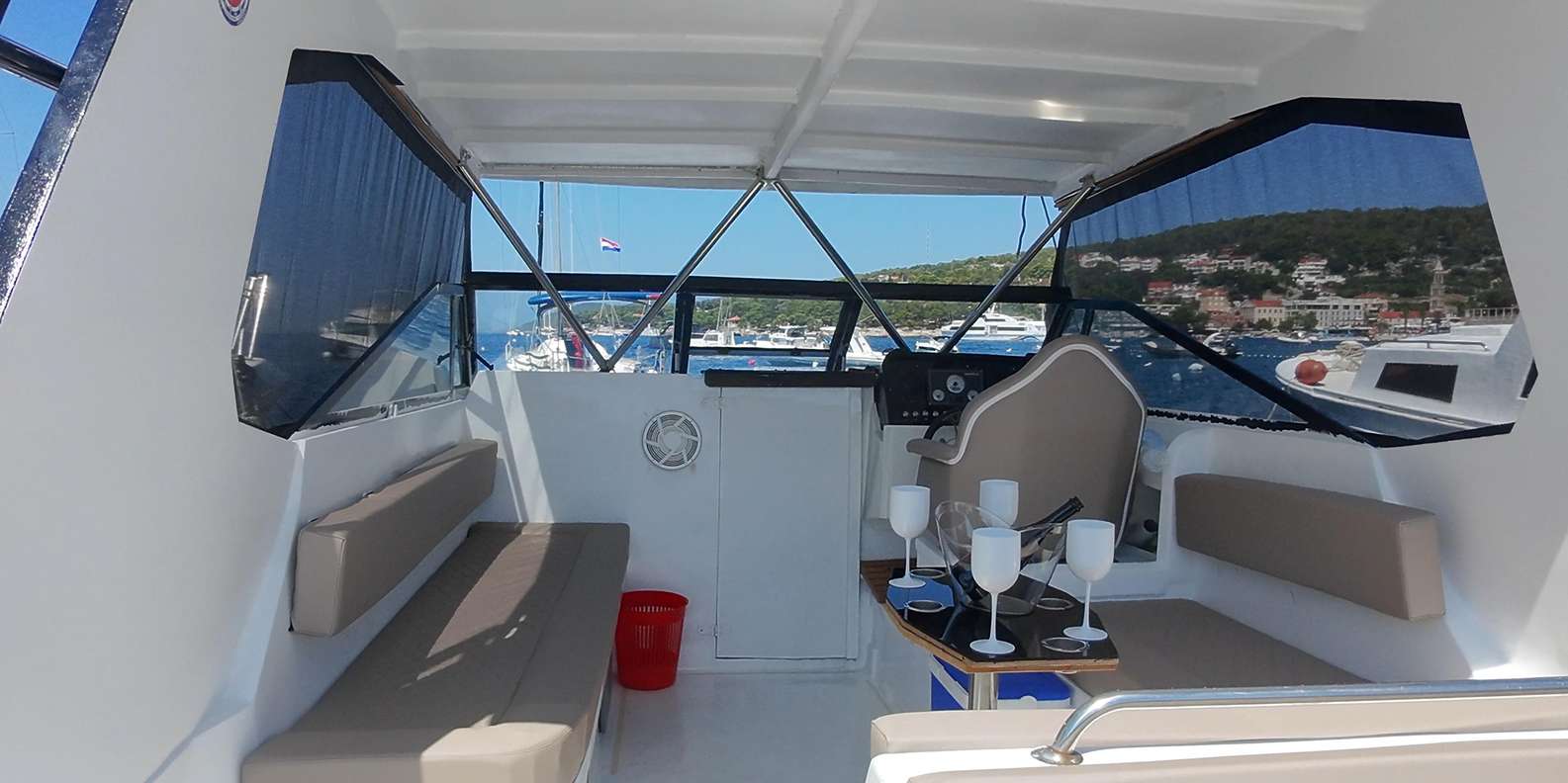 Steige an Bord und beginne dein Abenteuer auf einem klaren blauen Meer und in einer freundlichen Atmosphäre. Auf dieser Tour erlebst du atemberaubende Naturschönheiten: klares, blaues Meer, Inseln, das Sveta Nedelja-Gebirge und die Roten Felsen von Hvar.