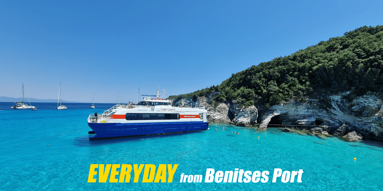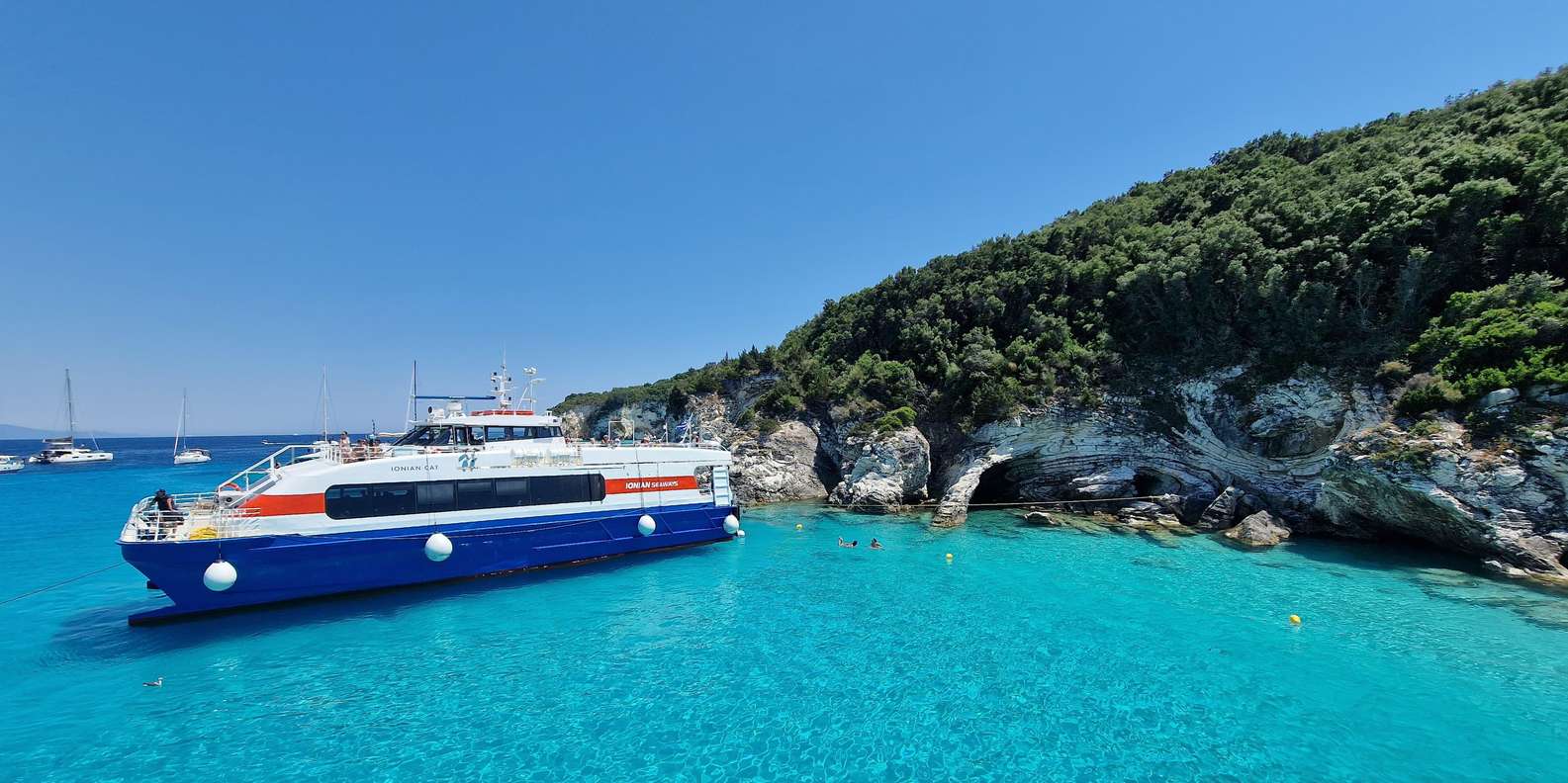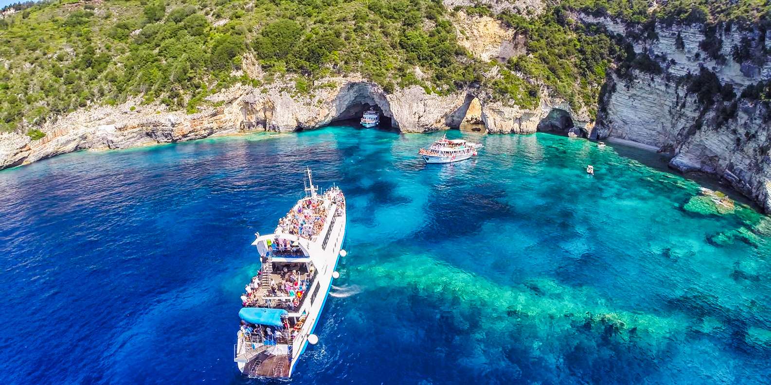 Genieße eine ganztägige Kreuzfahrt zu den Juwelen des Ionischen Meeres - den Inseln Paxos und Antipaxos und den berühmten blauen Höhlen.
