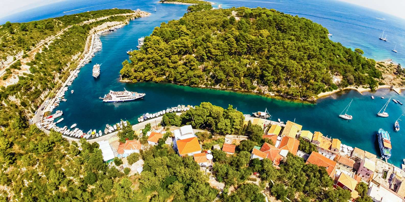 Auf der kleinen Insel Antipaxos hast du die Möglichkeit, am Mesovrika Beach oder am Voutoumi Beach zu schwimmen. Die Fahrt geht weiter durch den engen Kanal von Paxos und zu den Inseln Panagia und Agios Nikolaos. Der Kapitän legt im Hafen des Dorfes Gaios an und du hast Zeit, die Stadt zu erkunden.
