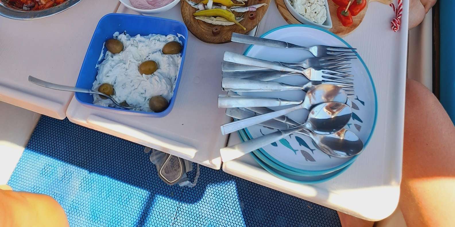 Schließe dich unserer Crew auf dem Segelboot La Pomme Bleue an und verbringe den Tag mit Nikos und Marion, deinen französisch-griechischen Reiseleitern. Schwimm, schnorchle, erlebe Abenteuer mit Nikos und genieße ein traditionelles Mittagessen an Bord mit unbegrenzten Getränken.