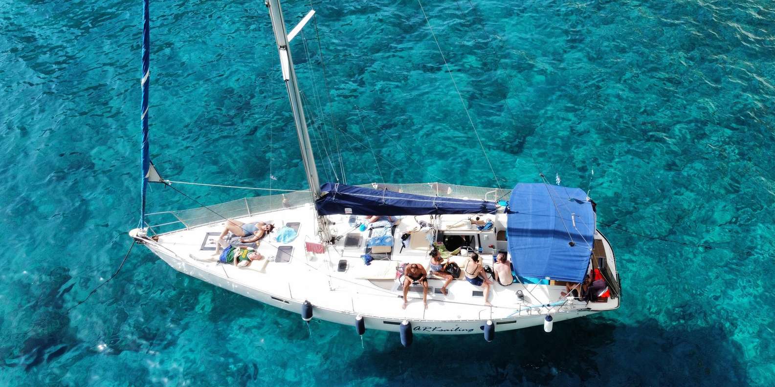 Schließe dich unserer Crew auf dem Segelboot La Pomme Bleue an und verbringe den Tag mit Nikos und Marion, deinen französisch-griechischen Reiseleitern. Schwimm, schnorchle, erlebe Abenteuer mit Nikos