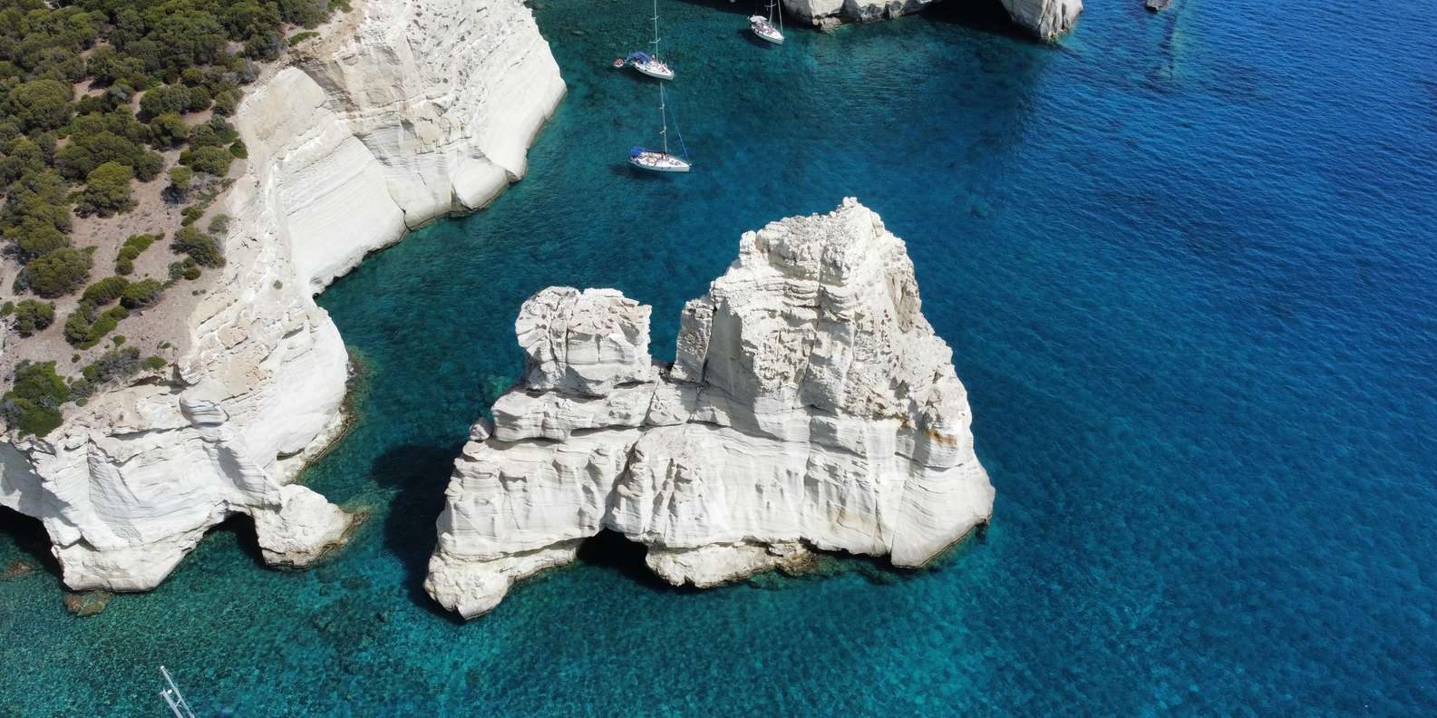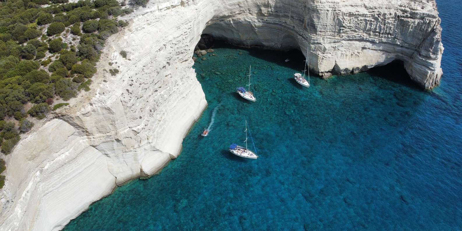 Erkunde die wunderschöne vulkanische Küste im Westen von Milos. Schwimme, schnorchle, iss und entdecke das magische blaue Wasser und die versteckten Juwelen der Insel, darunter die Kleftiko-Bucht.