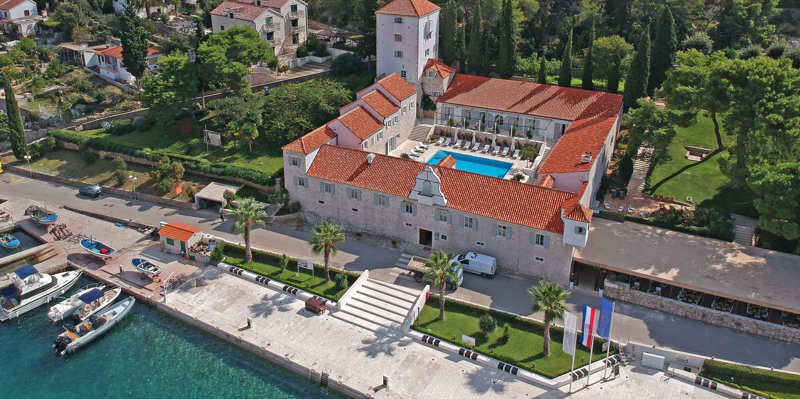 Nachdem Sie die Drvenik-Inseln erkundet haben, fahren Sie weiter zur Insel Šolta und legen einen Zwischenstopp im charmanten Dorf Maslinica ein, der einzigen Siedlung an der Westküste der Insel. Das Highlight von Maslinica ist die wunderschön restaurierte Burg aus dem 16. Jahrhundert, die heute als luxuriöses Heritage-Hotel genutzt wird. Schlendern Sie durch das malerische Dorf, das von traditionellen Steinhäusern, Pinienwäldern und einsamen Felsstränden umgeben ist. Der nahegelegene Archipel aus sieben kleinen Inseln macht dieses Gebiet zu einem der malerischsten Orte an der Adria. Dieser Halt eignet sich perfekt für eine Kaffeepause und einen kurzen Erkundungsgang.