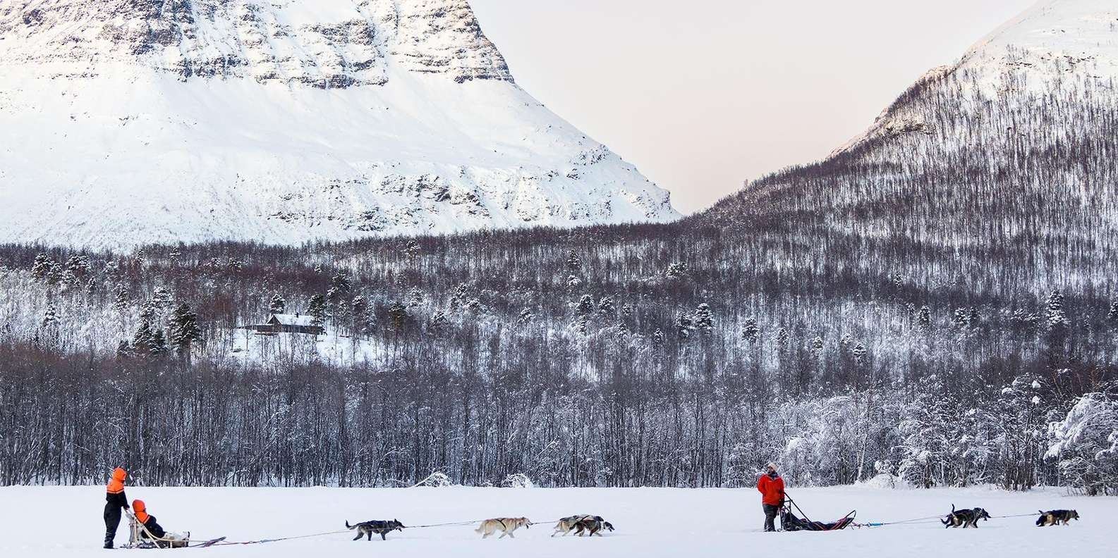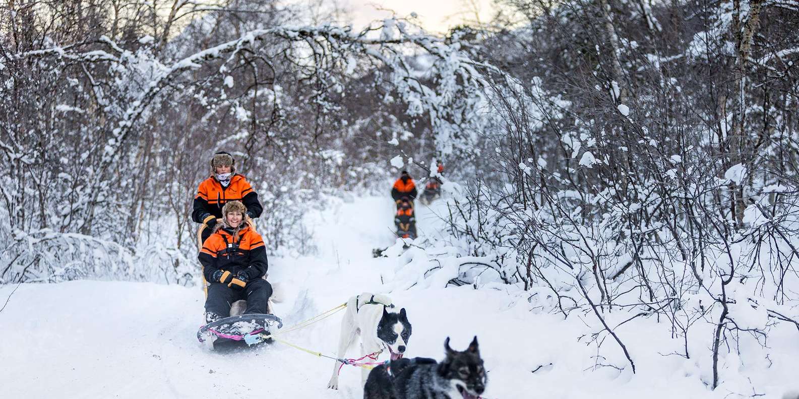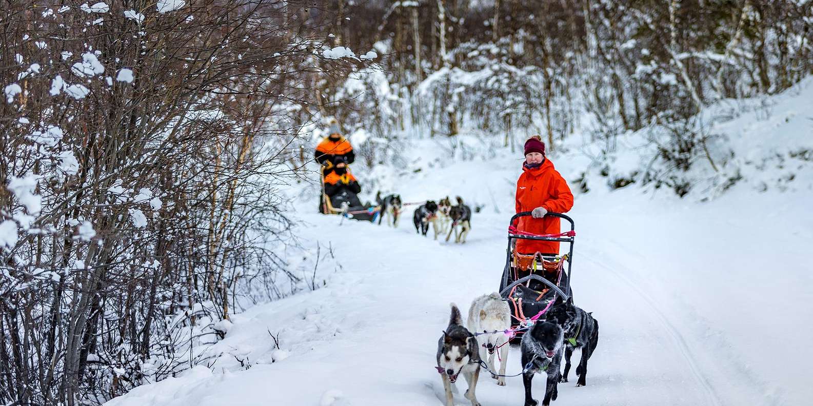 Begib dich mit uns auf ein Abenteuer in Tamokdalen, das außerhalb von Tromsø liegt. Fahre deinen eigenen Hundeschlitten durch verschneites Gelände, umgeben von der arktischen Berglandschaft, genieße eine warme Mahlzeit und besuche unseren Hundeplatz!