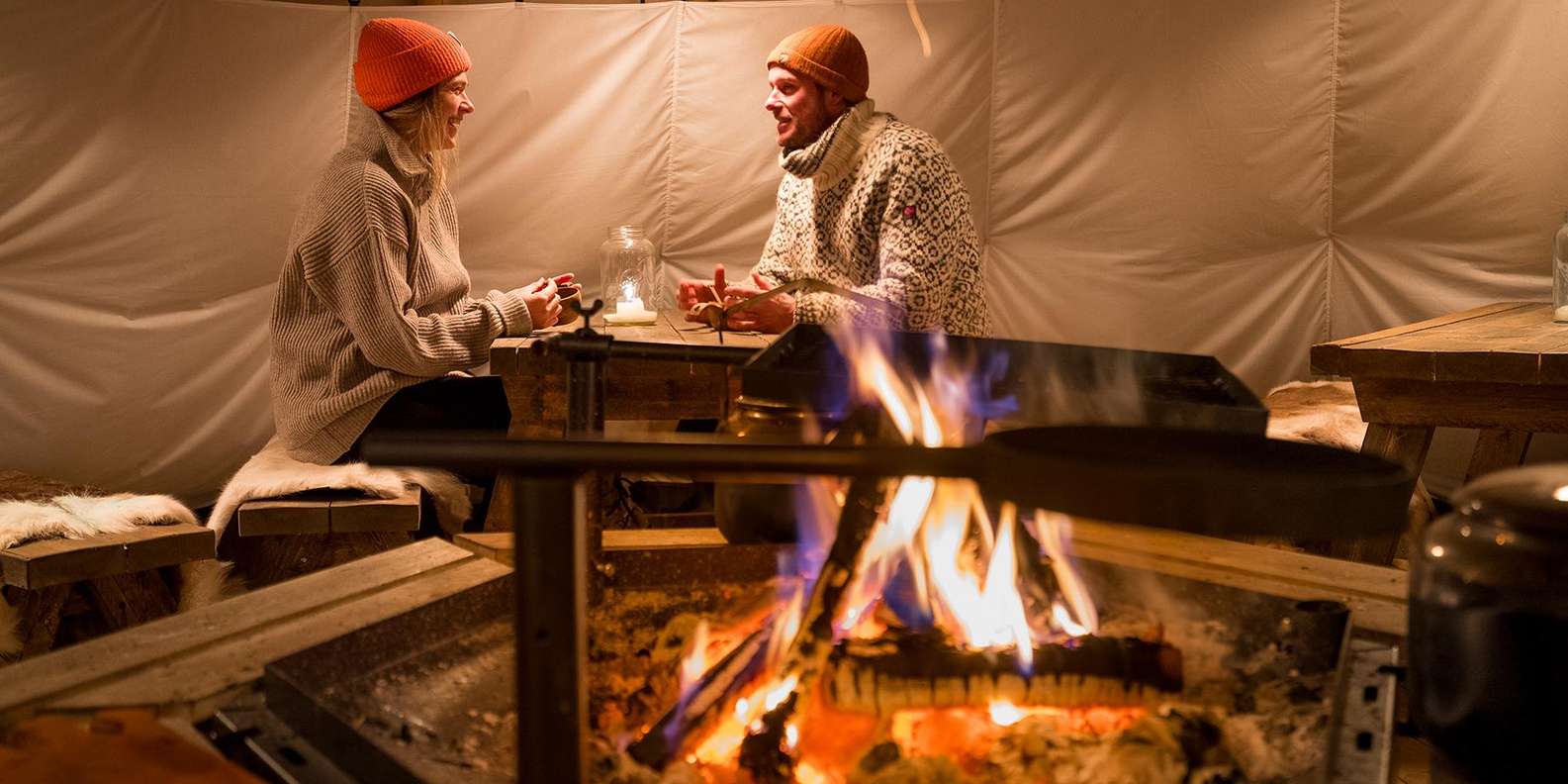 Wenn die erste Gruppe von ihrer Schlittenfahrt zurückgekommen ist, tauschen beide Gruppen die Plätze. Jetzt ist es Zeit für die andere Gruppe, zu ihrem Abenteuer aufzubrechen, während die erste Gruppe sich im Camp bei einer warmen Mahlzeit und Getränken entspannen, den Hundeplatz besuchen und mehr über unsere Huskys erfahren kann.