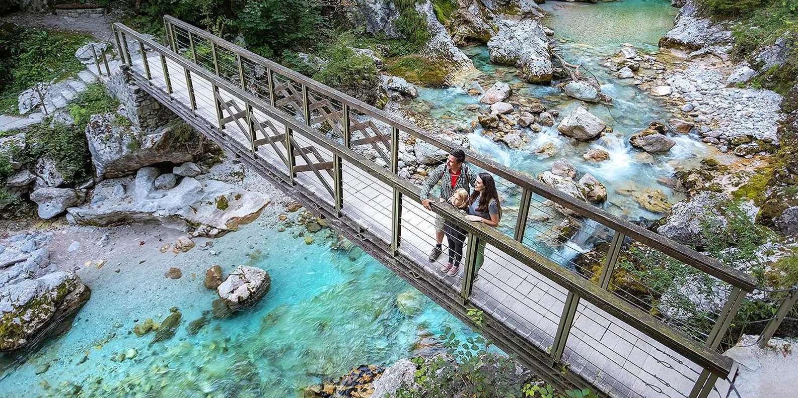 Beginne dein Abenteuer an der Tolmin-Schlucht, dem dramatischen Eingang zum Nationalpark Triglav. Reisen in einer kleinen Gruppe ermöglichen ein entspanntes Tempo, während du über türkisfarbenem Wasser, durch enge Felskorridore und über Holzbrücken an einem Ort wanderst, an dem die Natur wirklich ihre Kraft zeigt.