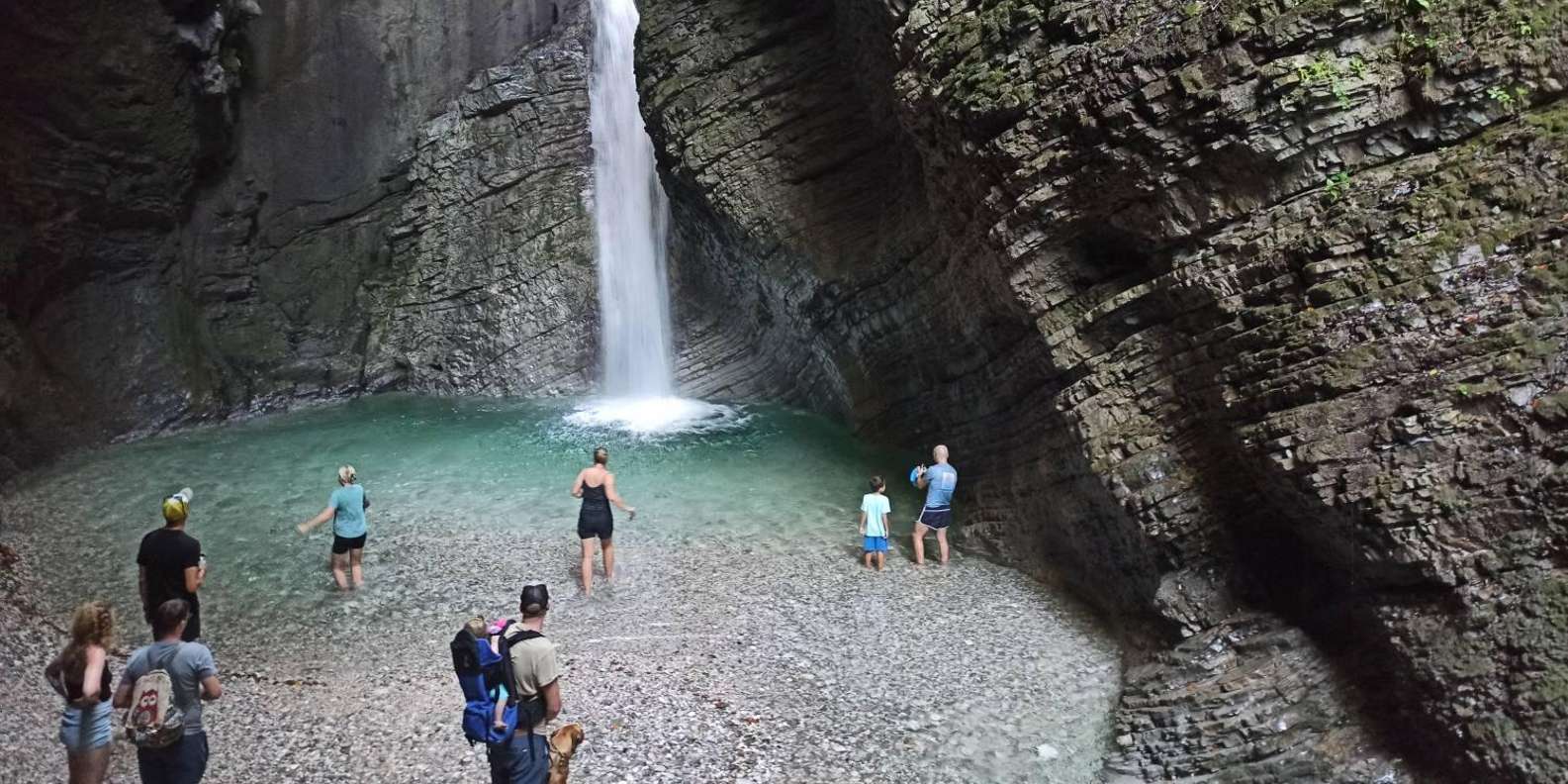 Entdecke die Schönheit des Soča-Tals bei einer entspannten Tagestour in kleiner Gruppe. Besuche die Tolmin-Schlucht, den Kozjak-Wasserfall und die Große Soča-Schlucht. Genieße eine entspannende Mittagspause inmitten der alpinen Landschaft.