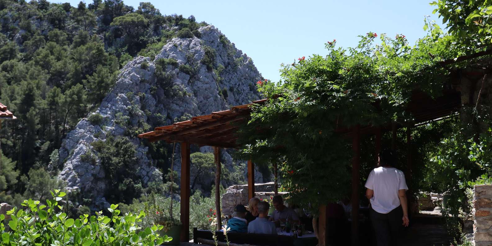 Und dann kommt das Mittagessen – ein wohlverdientes Mittagessen nach einer Wanderung. Wir setzen uns in einer lokalen Konoba (Taverne) nieder, wo alles mit Herz gemacht wird. Du wirst mit einem Getränk begrüßt, gefolgt von einem traditionellen Vorspeise und einem hausgemachten Dessert. Das Hauptgericht ist „Peka“ – eine dalmatinische Spezialität aus Tintenfisch oder Fleisch, das langsam mit Kräutern und Gemüse unter einer Eisenglocke gegart wird. Es ist nicht nur eine Mahlzeit, es ist ein Fest der Tradition und des Geschmacks.