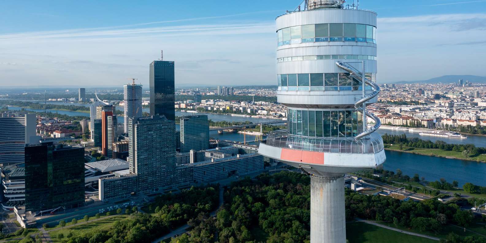 - Im landschaftlich reizvollen Donaupark gelegen, ist es ein absolutes Muss, die 360°-Aussicht zu genießen.