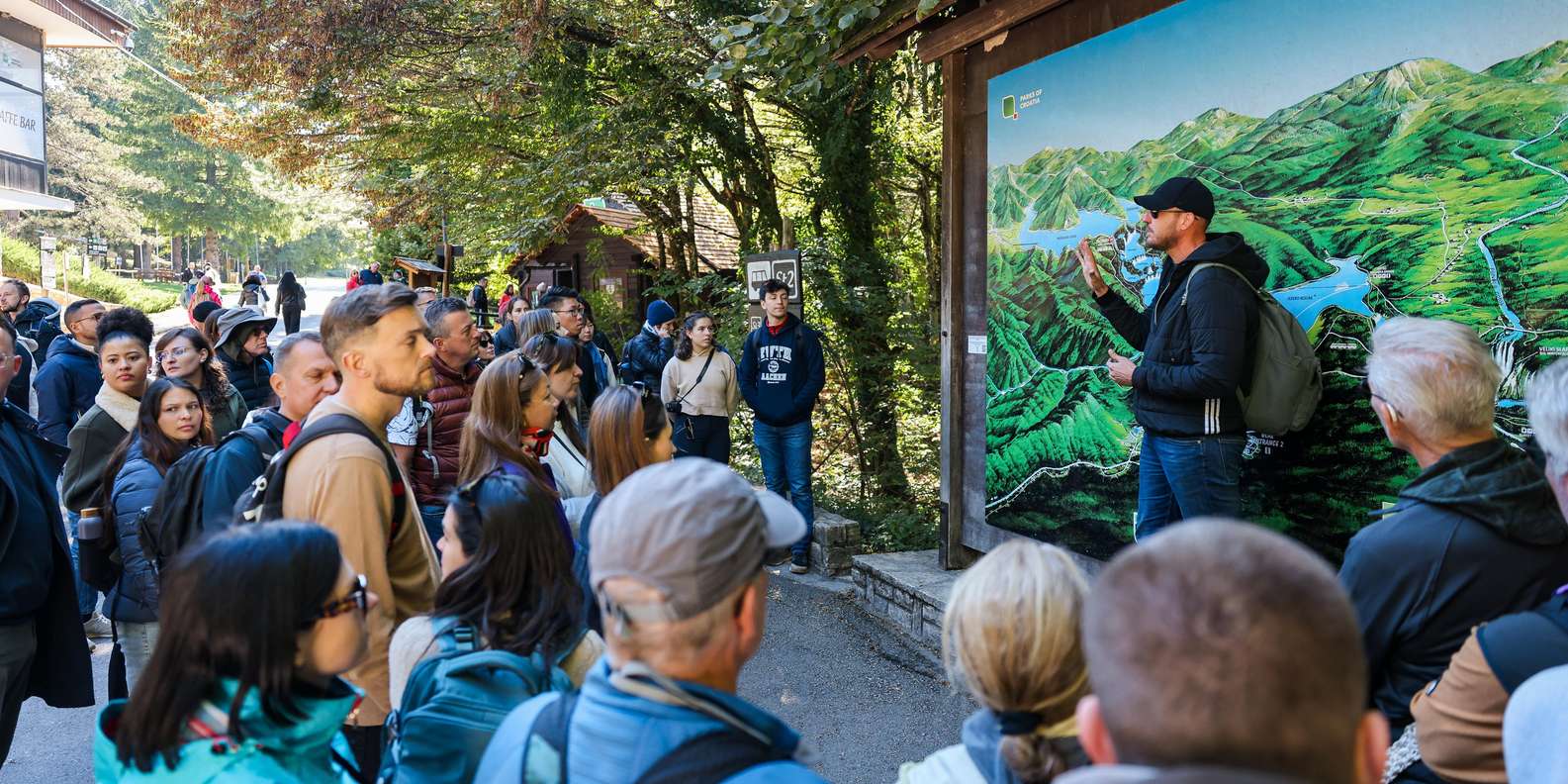 Begib dich am Morgen zum Treffpunkt und triff deinen freundlichen Guide und die Gruppe für den Tag. Nach einer kurzen Einführung fährst du aus der Stadt hinaus, bewunderst die kroatische Landschaft und hörst unterwegs Live-Kommentare zum Park.