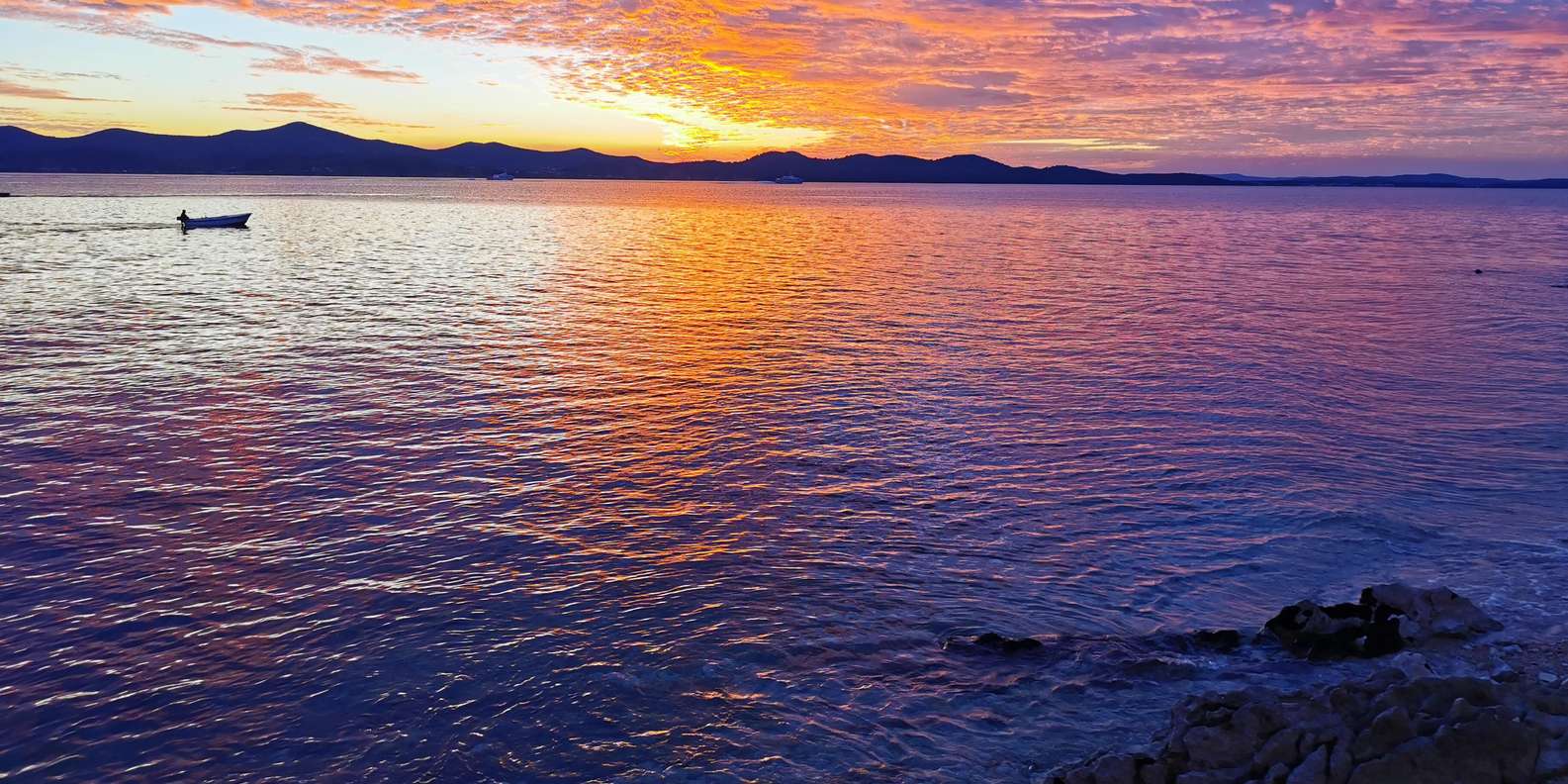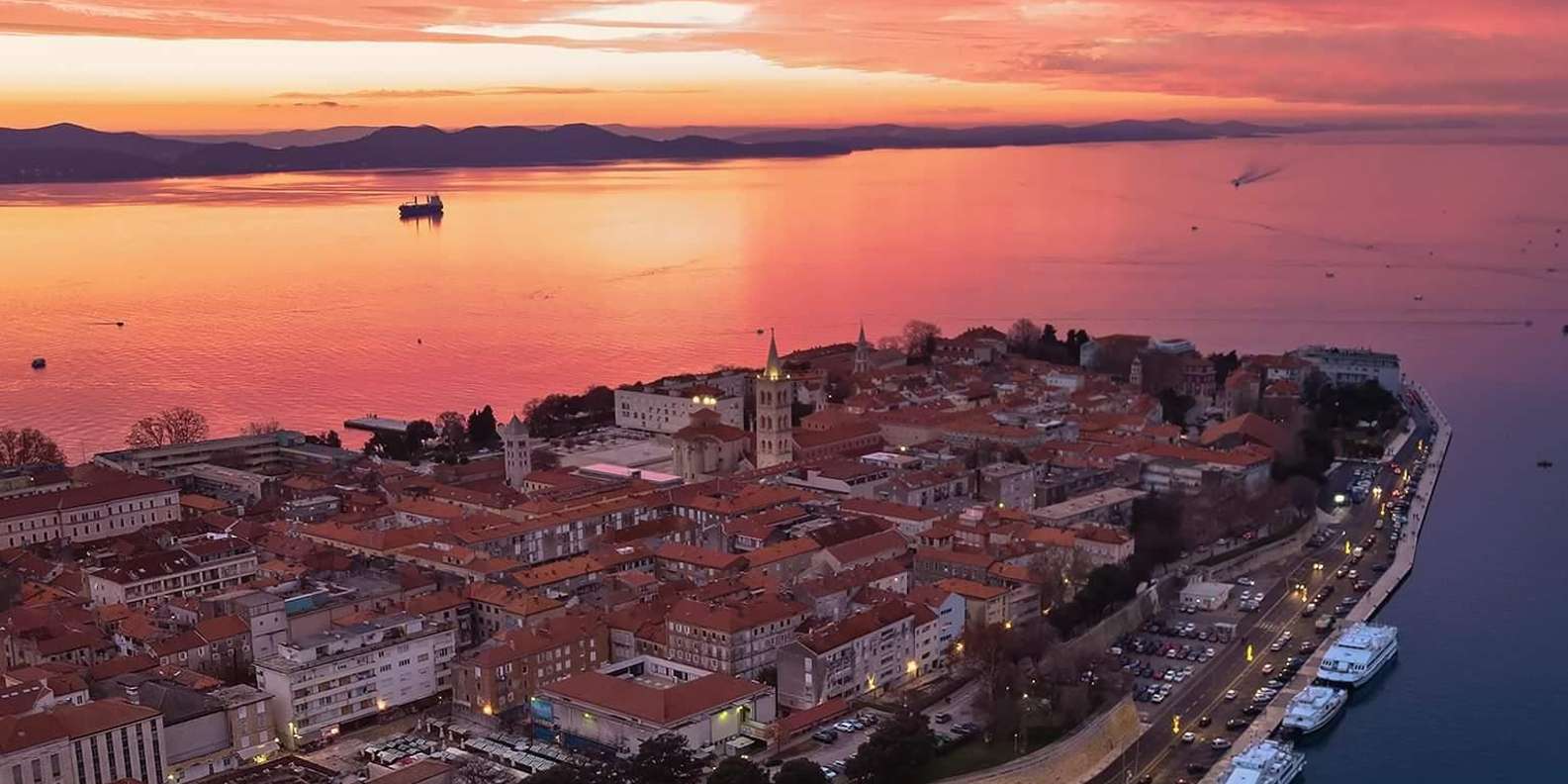 Wenn wir vom Hafen abfahren, gleiten wir an der Uferpromenade der Altstadt vorbei, vorbei an alten Steinmauern, charmanten roten Dächern und ikonischen Sehenswürdigkeiten wie der Meeresorgel und dem Gruß an die Sonne. Mit jeder Minute verwandelt sich der Himmel – von golden über rosa bis hin zu tiefem Orange, das sich in der ruhigen See spiegelt und die Stadt in ein warmes Licht taucht.
