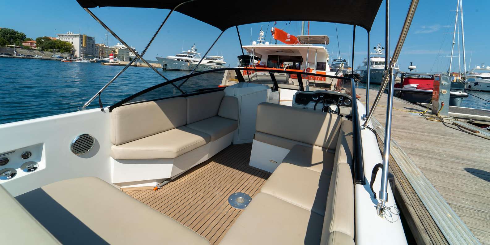 Treffen Sie sich im Hafen von Jazine in Zadar und steigen Sie in Ihr komfortables Schnellboot