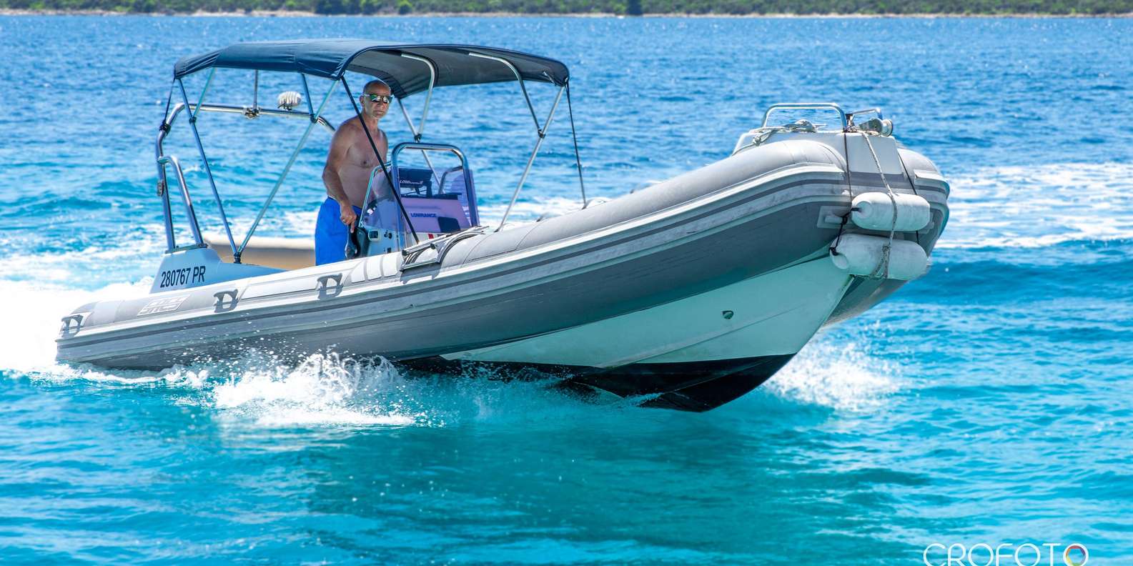 - Entspann dich auf einem komfortablen Schnellboot mit Sonnenbereich und Musikanlage.