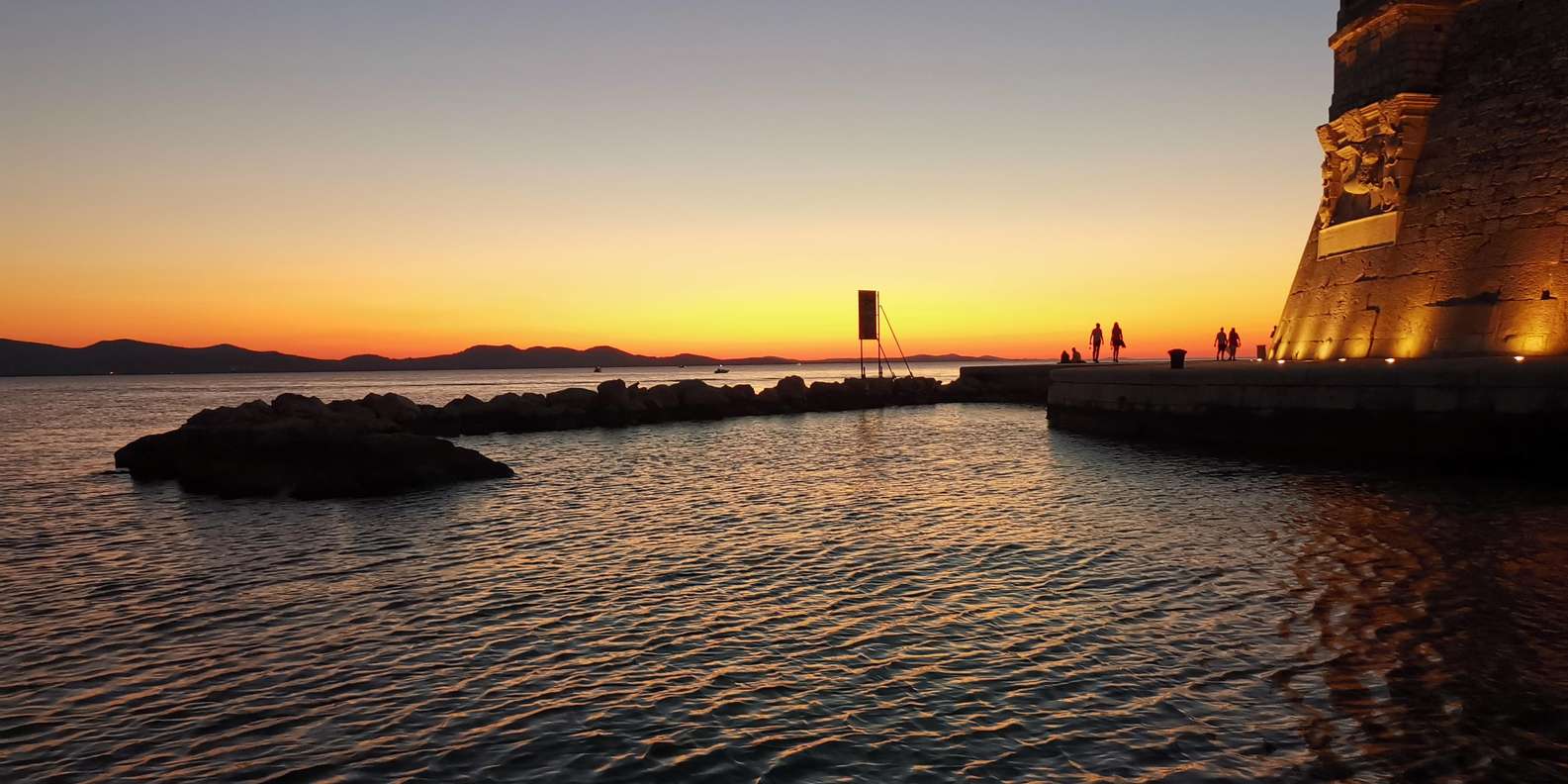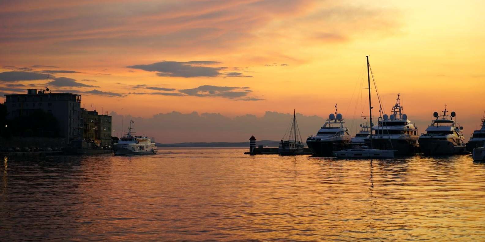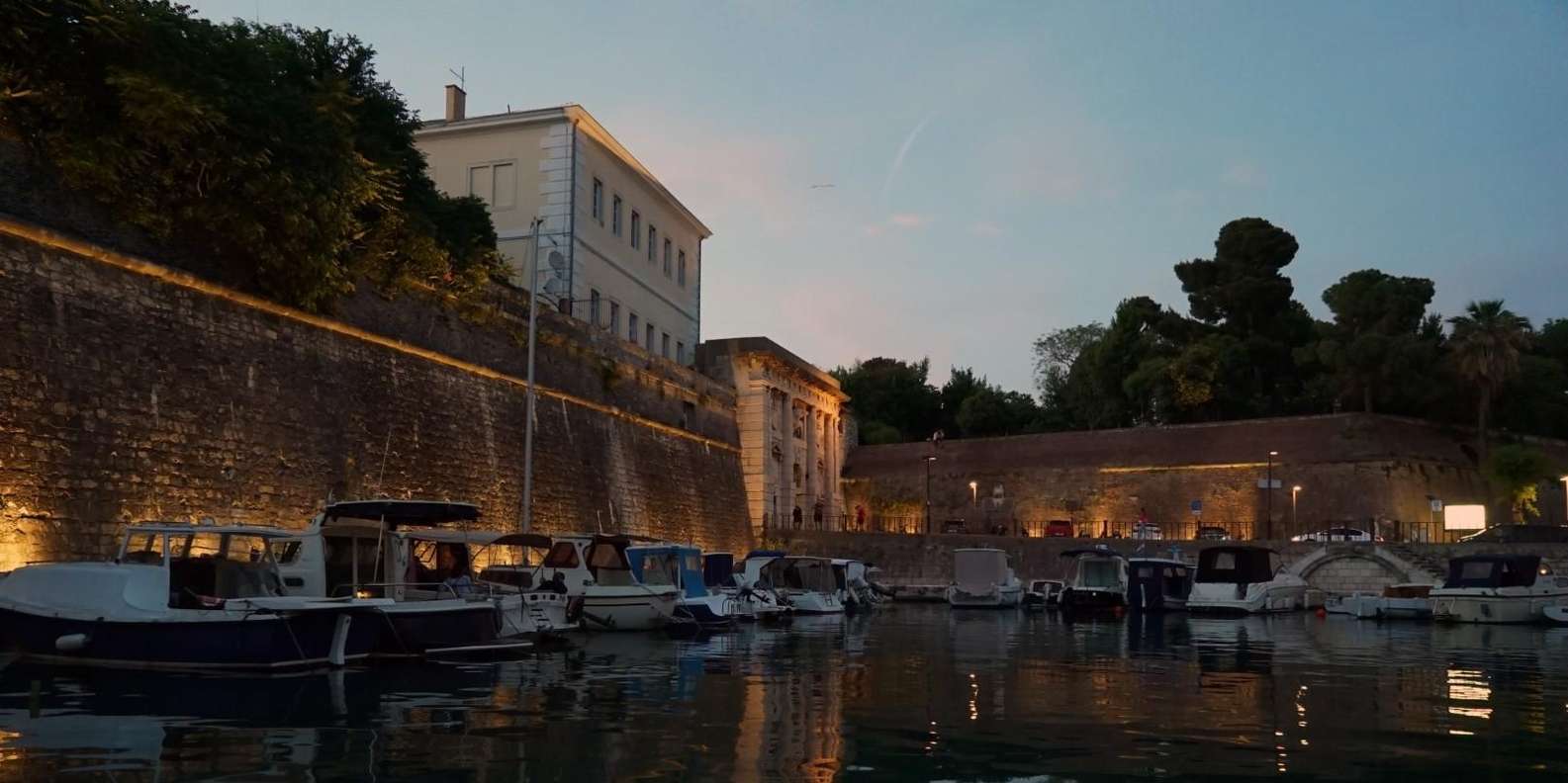 Bewundere die atemberaubende Aussicht auf Zadar, während die Sonne untergeht.