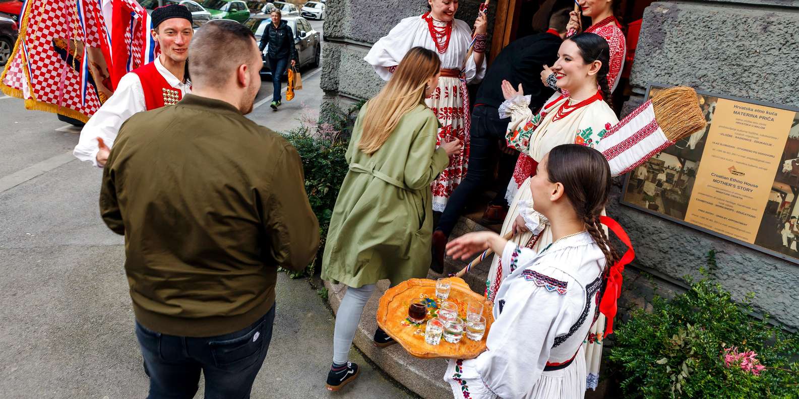 Betritt ein wunderschön erhaltenes, traditionelles kroatisches Haus, in dem du von Tänzern in authentischen kroatischen Volkstrachten aus verschiedenen Regionen des Landes begrüßt wirst. In diesem Wor